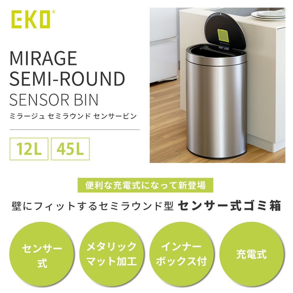 自動開閉ゴミ箱 センサー付き ミラージュセミラウンドセンサービン 45L 12L ラウンド おしゃれ EKO