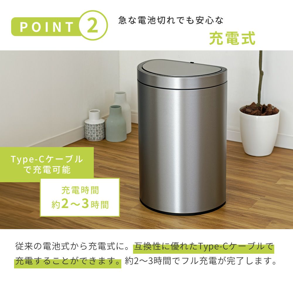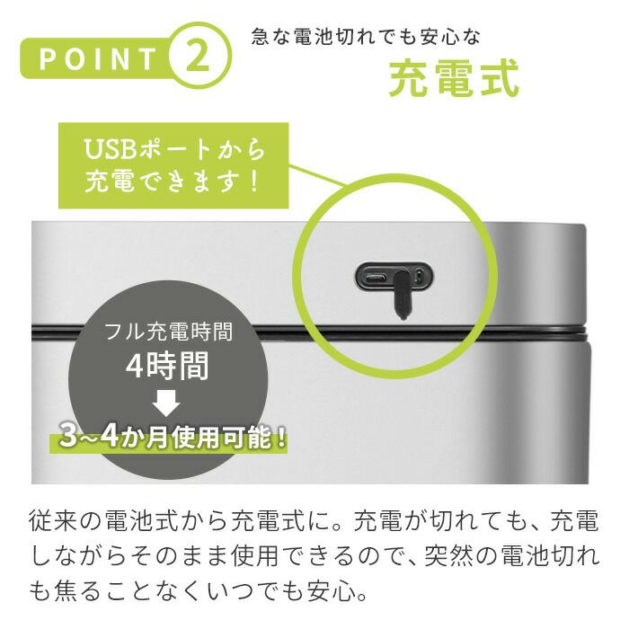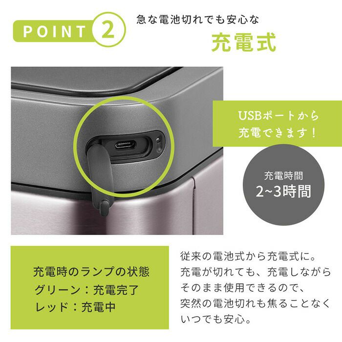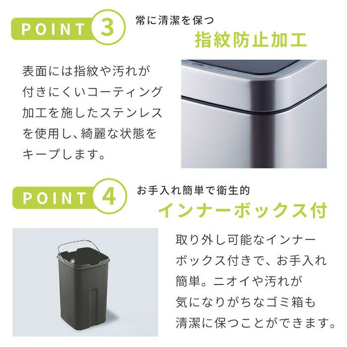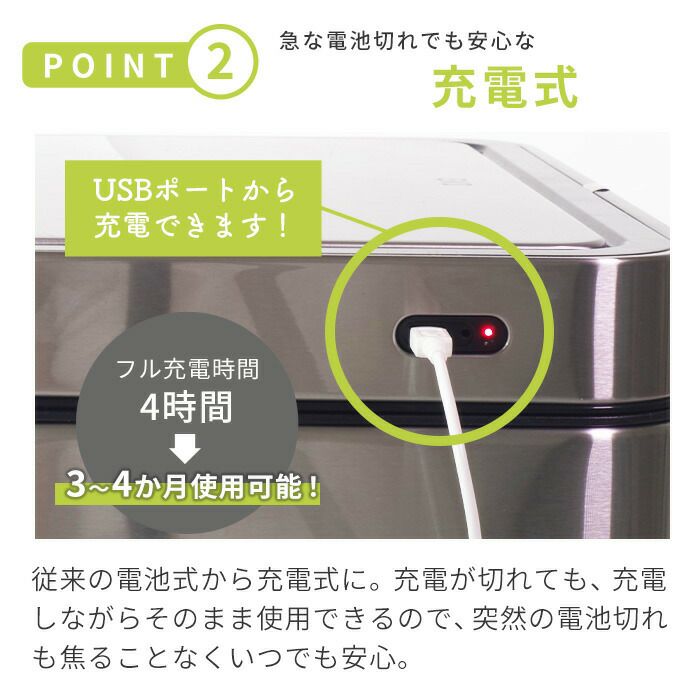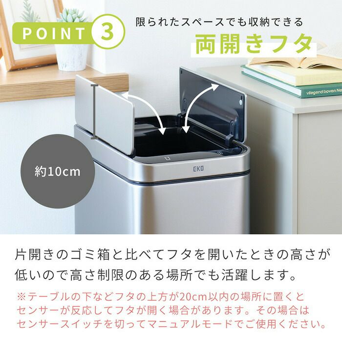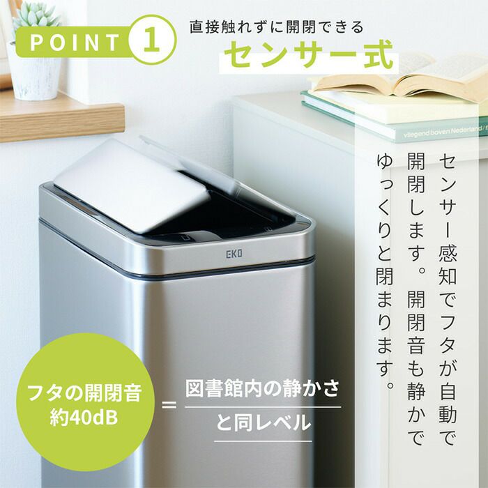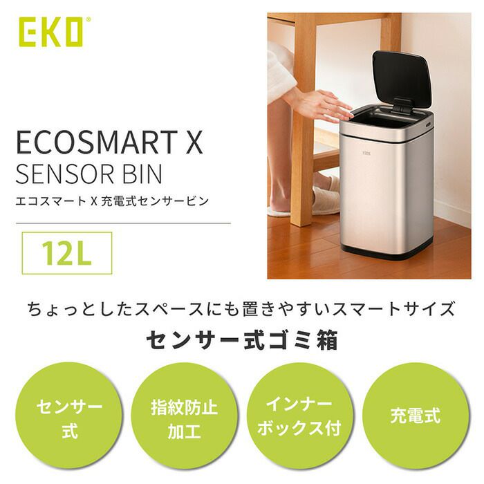 自動開閉ゴミ箱 12L 分別 角型 エコスマートX充電式センサービン EKO
