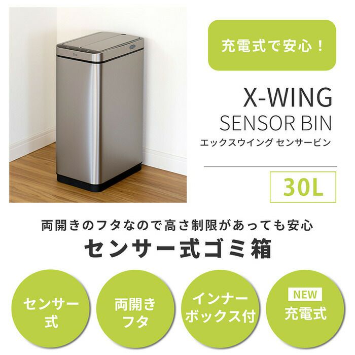 自動開閉ゴミ箱 30L センサー付き エックスウィングセンサービン 両開き 充電式 EKO