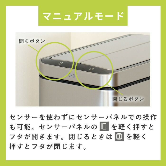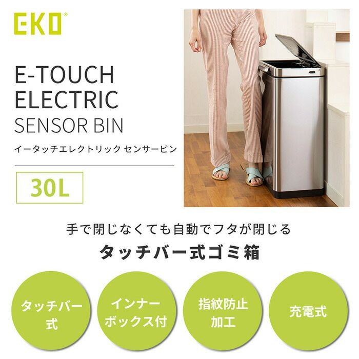 自動開閉ゴミ箱 30L ステンレス 分別 イータッチエレクトリック センサービン 充電式 EKO