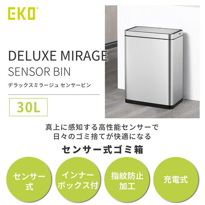 自動開閉ゴミ箱 30L センサー付き デラックスミラージュセンサービン 充電式 EKO