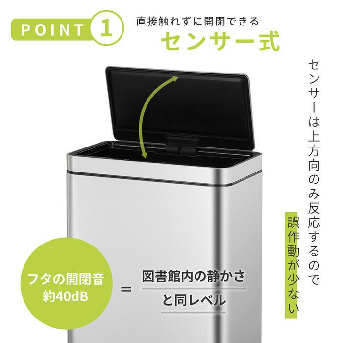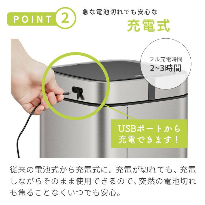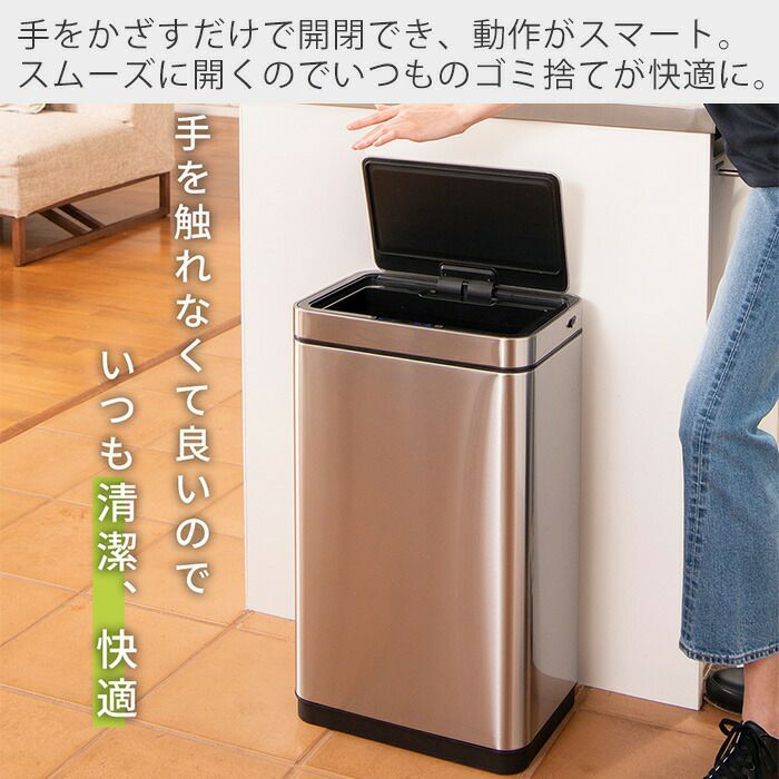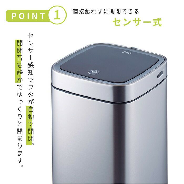 自動開閉ゴミ箱 45L ステンレス 分別 イータッチエレクトリック センサービン 充電式 EKO