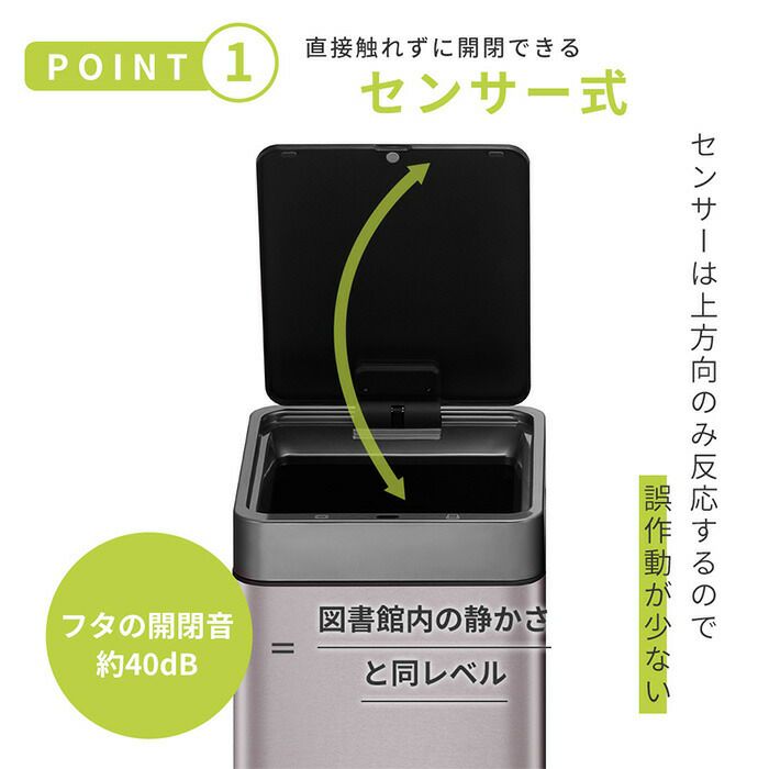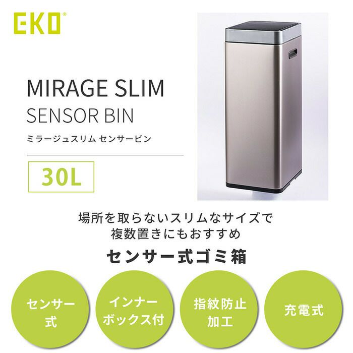 自動開閉ゴミ箱 30L ふた付き センサー付き ミラージュスリムセンサービン 充電式 EKO