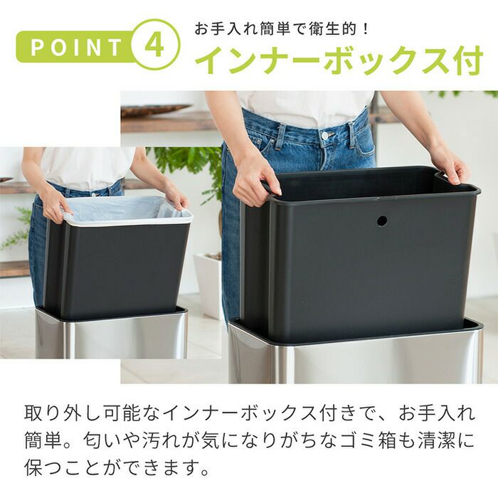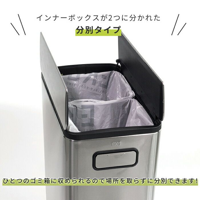 自動開閉ゴミ箱 40L+20L 分別 両開き ステンレス エコフライステップビン EKO