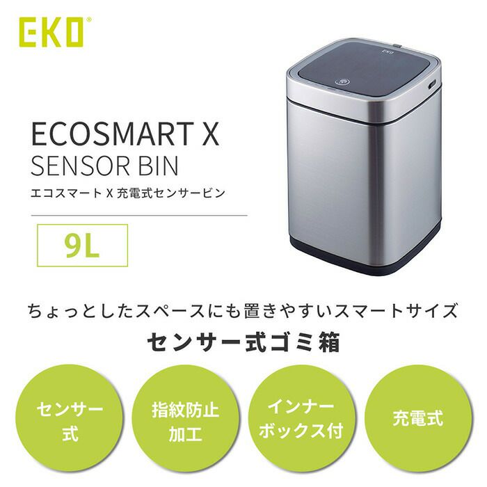 自動開閉ゴミ箱 9L 分別 ごみ 角型 センサー付き エコスマートX充電式 EKO
