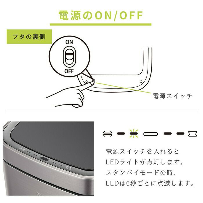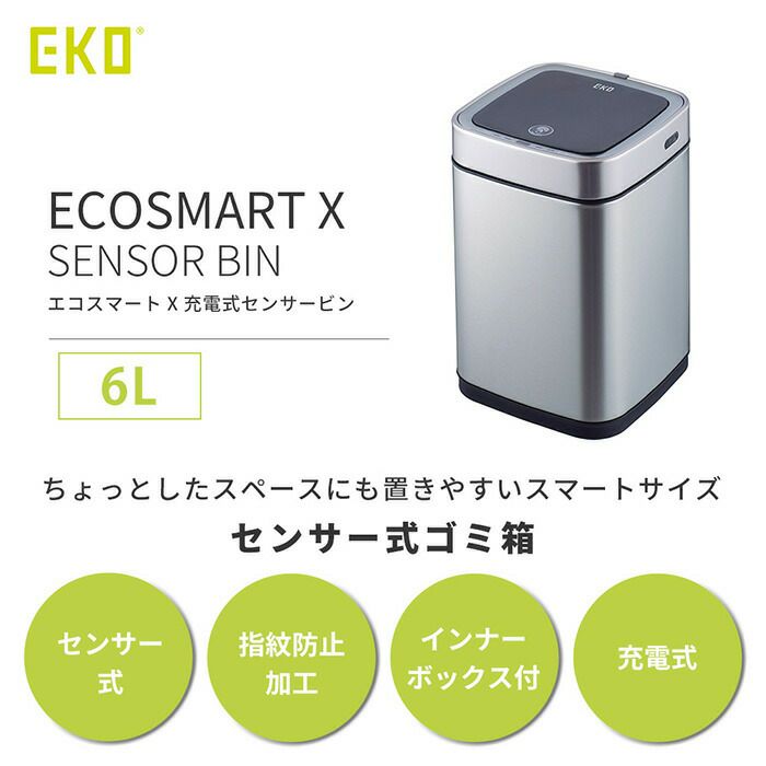 自動開閉ゴミ箱 6L 分別 角型 センサー付き エコスマートX充電式センサービン EKO