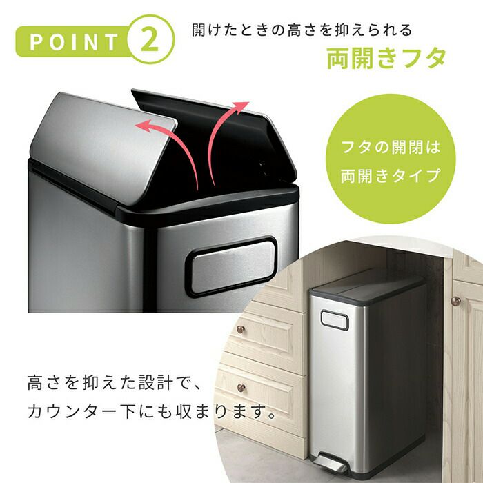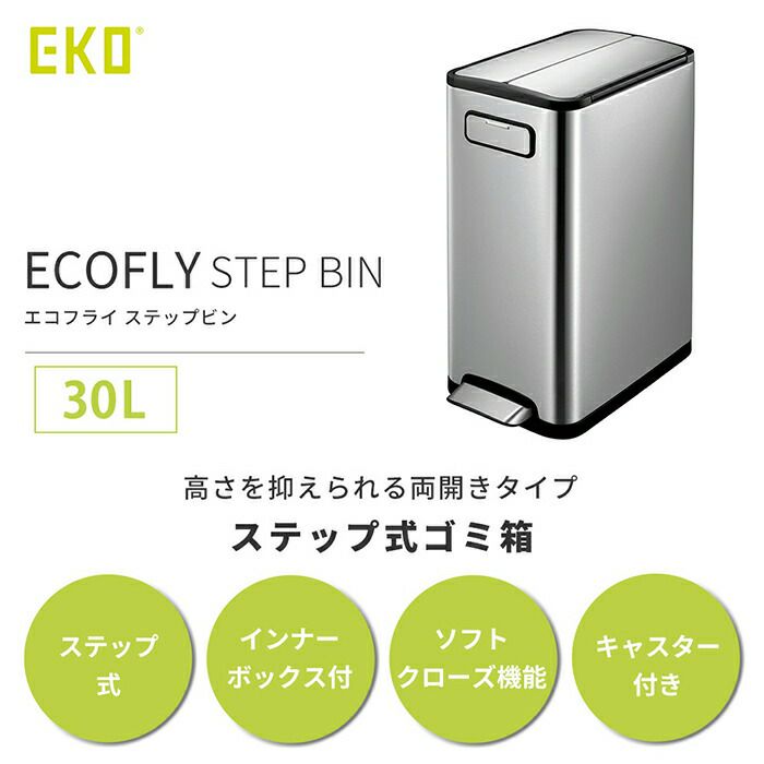 自動開閉ゴミ箱 30L 分別 両開き ステンレス エコフライステップビン EKO