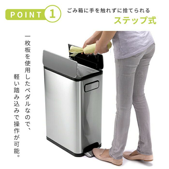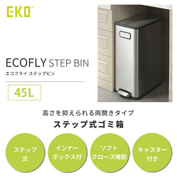 自動開閉ゴミ箱 45L 分別 両開き ステンレス エコフライステップビン EKO