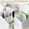 縦横自由に固定できるマグネット付き仕切りが付いています。中身の整理がしやすく、小物やシートマスク、湿布など形が異なる小物を分けて収納できます。