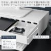 モニター台の下部はキーボードの収納スペースになっています。パソコンを使わない時はキーボードを収納して、デスクを広々と快適に使うことができます。