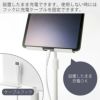 タブレットや小型ゲーム機を設置したまま充電できます。使用しない時のために充電ケーブルを固定するフックも用意されています。