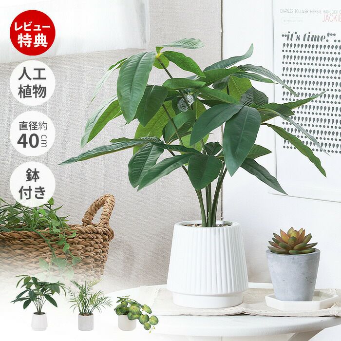 パキラ: (全体)約 横幅44×奥行40×高さ43cm (鉢)約 直径12×高さ12cm テーブルヤシ: (全体)約 横幅32×奥行35×高さ42cm (鉢)約 直径11.5×高さ11.5cm シンゴニウム: (全体)約 横幅43×奥行26×高さ26cm (鉢)約 直径14.5×高さ13.5cm |