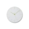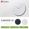 「質感」をテーマにし、あらゆる壁とバランスが取れるような密度感にこだわった時計。建築家デザイナーならではの素材選びに加え、グラフィックをフォルムとして扱い、とことん質感にこだわった「CARVED」シリーズ。ドリルでわざと文字盤からはみ出させて文字を削り出すことで、切削した断面を文字盤のエッジ部分から見せ、視覚的に立体であることを分かりやすくしたデザインです。彫り込まれた文字が文字盤に立体感を与え、周囲の光環境に応じて表情を変えます。「CARVED Ⅱ」は、技術の限界まで文字の細さに挑戦し、わずか2mmの文字幅を叶えました。一見、文字には見えないような細い書体は、シャープで清潔感のある印象を与えます。シンプルながらデザイン性があり、主張しすぎず空間にすっと馴染むデザインに仕上がりました。文字盤の素材には、石膏のような風合いでありながら非常に軽い無機質系人造木材を採用。マットな表面仕上げが高級感を演出します。上品な細めの針には、差し色となるカラーを採用したことで、洗練されたデザインながら見やすさも兼ね備えています。秒針は、静かに、滑らかに時を刻むスイープ運針。確かな品質で安心の日本製です。 |