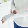 二の腕まで覆える長さで、袖丈との隙間ができにくく、紫外線から肌をしっかりガードします。