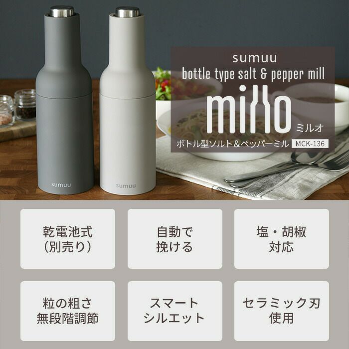 ボトル型ソルト&ペッパーミル ミルオ sumuu(スムウ)
