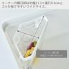 ポリ袋をコーナーに掛けるだけで簡易ゴミ箱の出来上がり。取り外しも下からサッと引き抜くだけととても簡単です。
