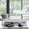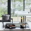 耐荷重は約5kgなので、中身の入ったお鍋やフライパンの一時置きや、ケトル置きなど色んな用途に使うことができます。本体はスチール製で耐熱温度は約200℃。調理中のお鍋を置いても大丈夫です。