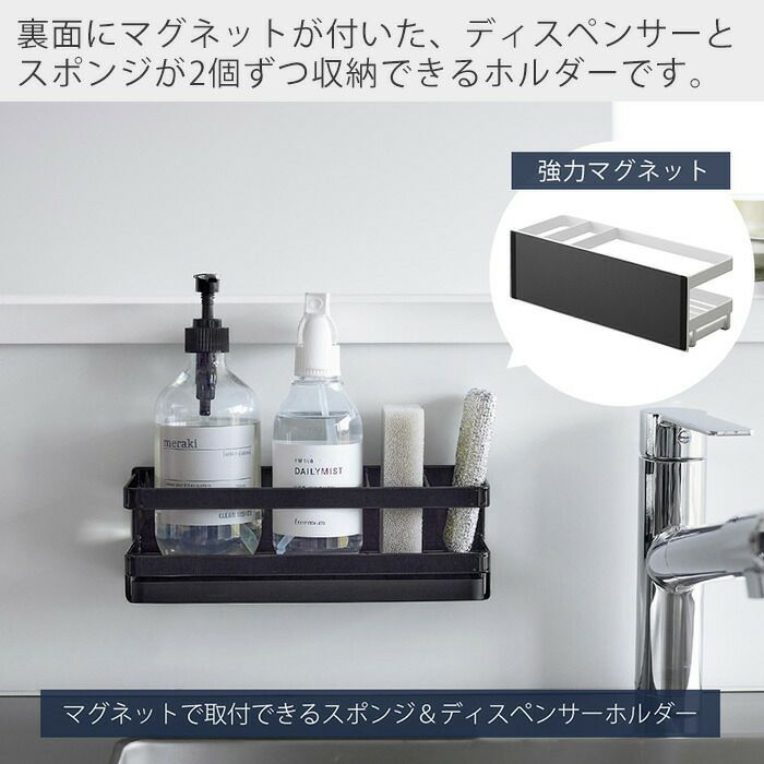 山崎実業 公式 マグネットスポンジ&ディスペンサーラック トレー付き タワー