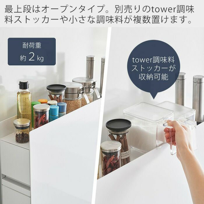 山崎実業 公式 前が開く 隠せる調味料ラック タワー