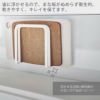 マグネットがつくキッチンパネルなどに取り付けが可能なまな板ホルダー。乾きやすく衛生的です。