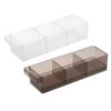 仕切りを活用することでビン状のもの、袋に入っているものなど形状の違うものも同じケースに収納可能。さらに収納するものの賞味期限・味・量に合わせて分別もすることができます。