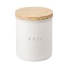 容器は光や熱から風味を守ってくれる陶器製。正面の coffee / sugar / salt の文字は少し盛り上がったエンボス加工がされています。