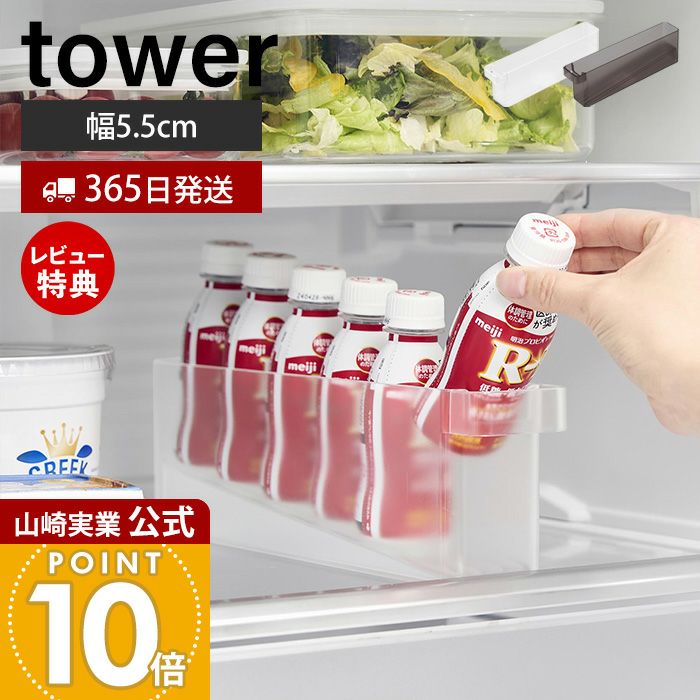 山崎実業 公式 冷蔵庫中ミニドリンク収納ケース タワー