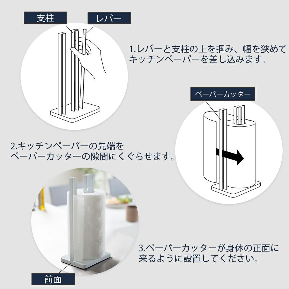 山崎実業 公式 片手で切れるキッチンペーパーホルダータワー
