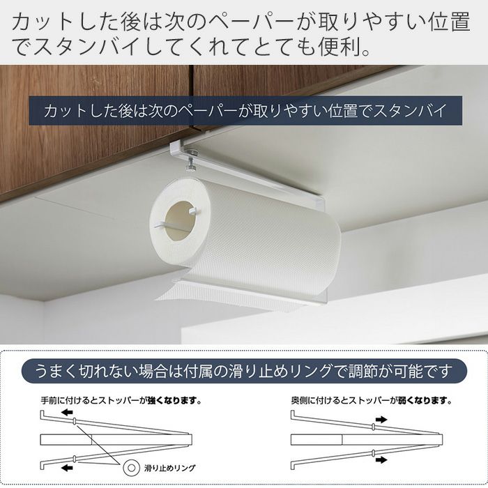 山崎実業 公式 片手でカット戸棚下キッチンペーパーホルダー タワー