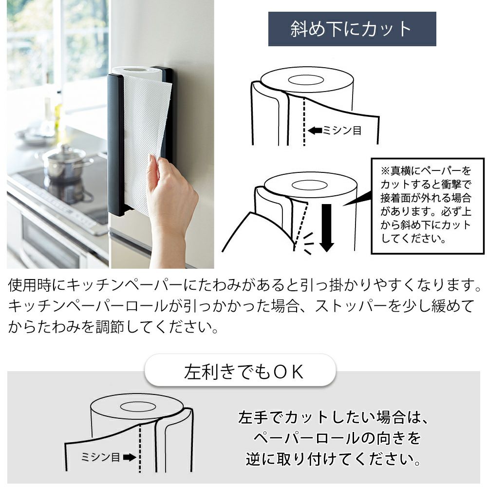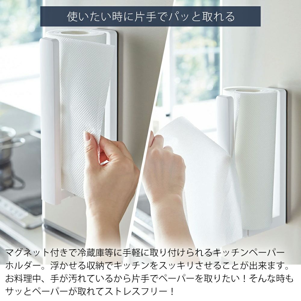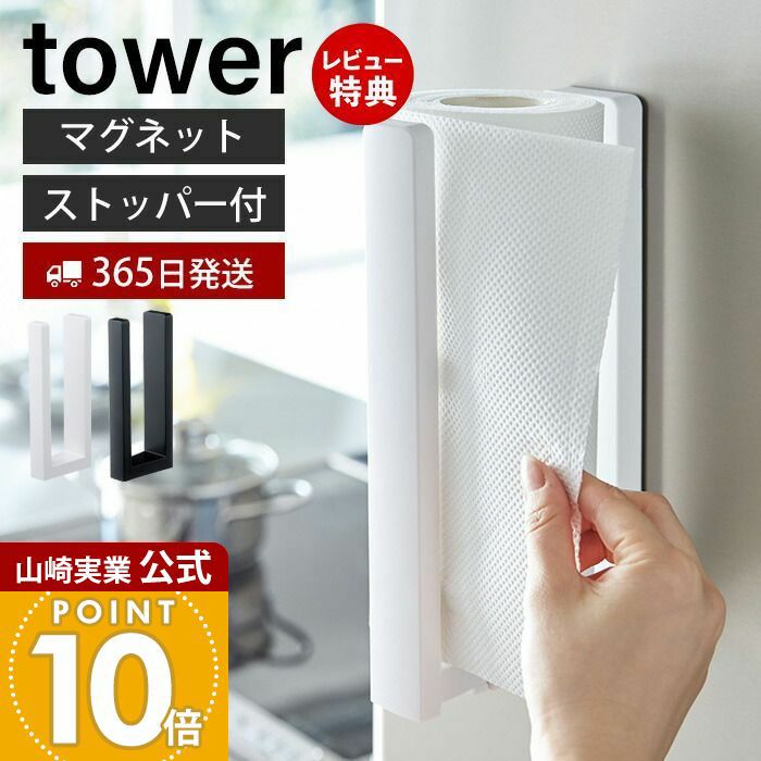 山崎実業 公式 ストッパー付マグネットキッチンペーパーホルダータワー
