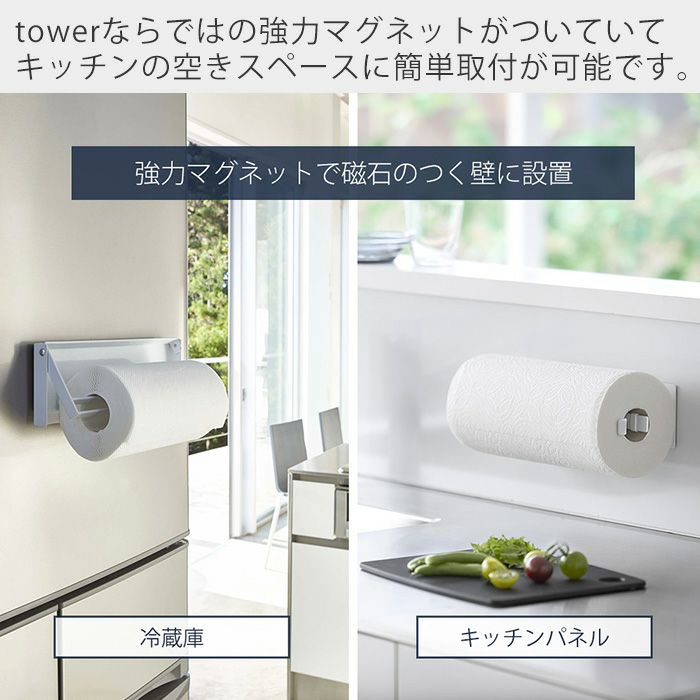 ヒルナンデスで紹介!山崎実業 公式 片手でカットマグネットキッチンペーパーホルダー タワー 縦タイプ