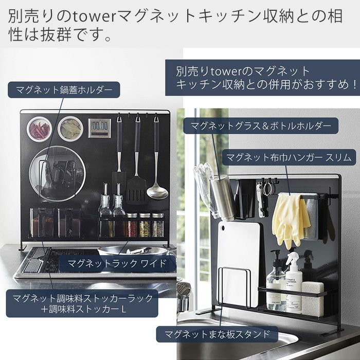 山崎実業 公式 キッチン自立式スチールパネル 横型 タワー
