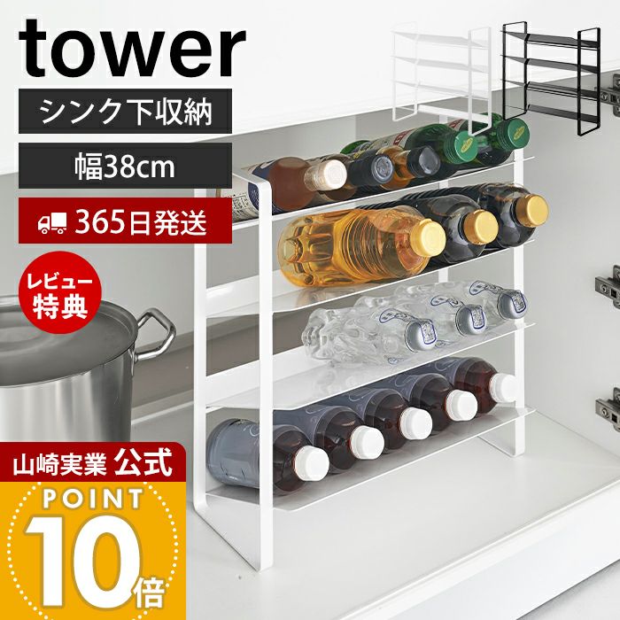 山崎実業 公式 シンク下ワイドボトルストッカー 4段 タワー