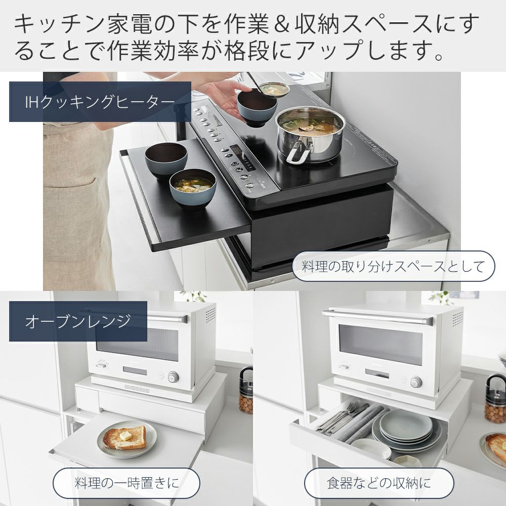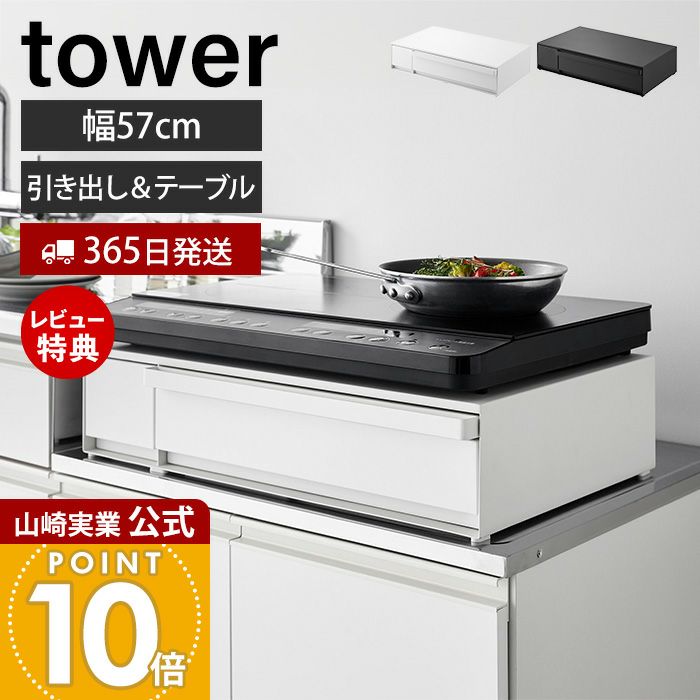 山崎実業 公式 IHクッキングヒーターラック 引き出し&スライドテーブル タワー