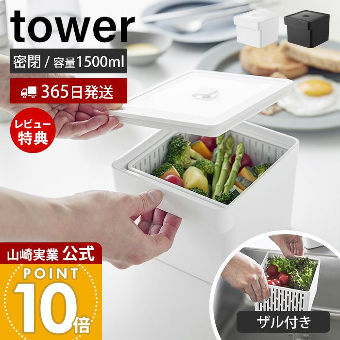 山崎実業 公式 電子レンジ・食洗機対応ザル付き保存容器 タワー