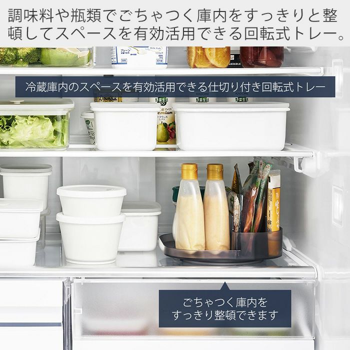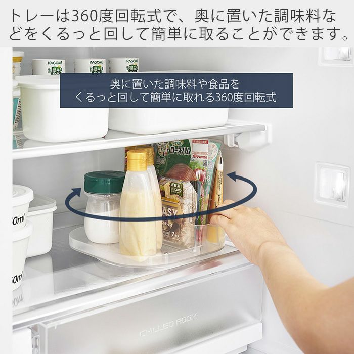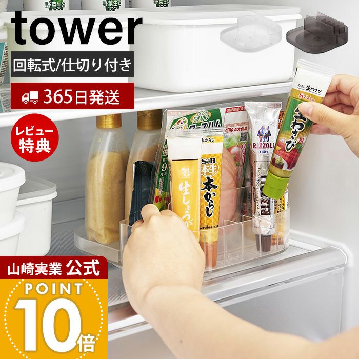 山崎実業 公式 冷蔵庫中回転式仕切り付きトレー タワー スクエア