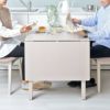 ライフスタイルに合わせて幅を変更できるダイニングテーブル。伸長前は75cm、伸長後は120cmに広がり、最大4人まで座れます。伸長方法は、天板を引き上げて脚をスライドさせるだけ。優しい色合い、簡易組立、アジャスター付き脚など、ディテールにまでこだわったアイテムです。