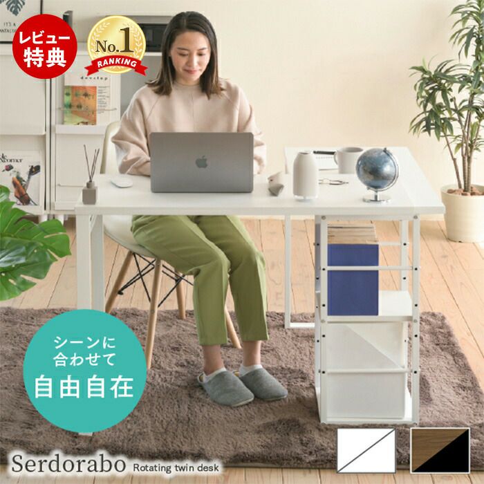 天板が回転し、様々なレイアウトが楽しめる”Serdorabo”。対面スタイル、コンパクトスタイル、ワイドスタイルなど使い方はユーザー次第!回転天板下には薄型回転盤が付いているので動きもスムーズです。 |