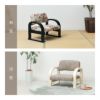 お部屋を広く見せてくれるコンパクトデザインと、落ち着きのある色合い。座面の高さは、身長やお好みに合わせて3段階で調節可能。肘掛け付きで立ち座りもラクにでき、毎日の動作をサポートします。脚部は安定感のあるソリ脚タイプで、キズ防止用のフェルト付き。組立は付属の六角レンチでボルトを締めるだけの簡単仕様です。