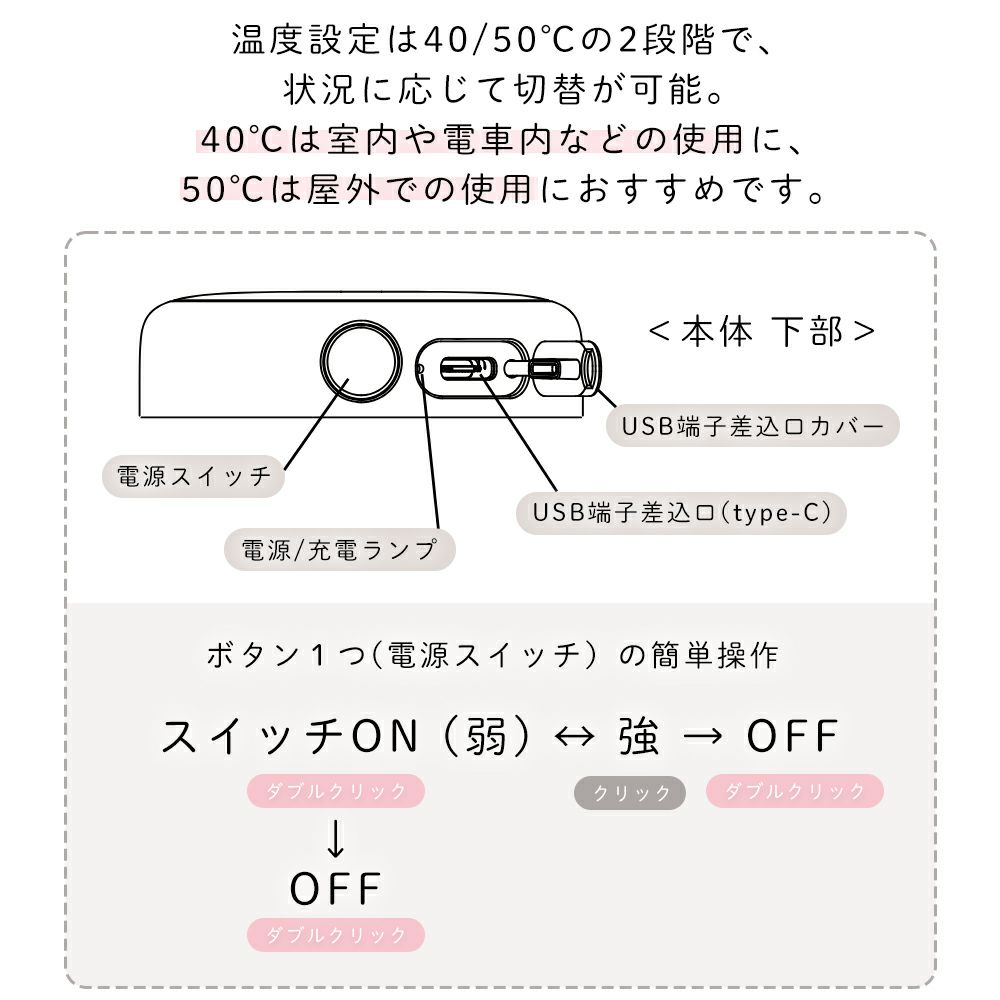 温度変化でデザインが変わる使い捨てないカイロLEDライト付 LCAEA014