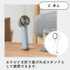 静音ミニハンディファン ネックストラップ&スタンド付 ミニクリアファン LEDライト付