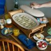 見た目にも美しいオーバルプレート×ウッドベース