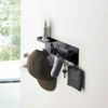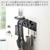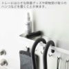 耐荷重はバーとトレーを合わせて合計約3.75kg(バー約1.5kg、トレー約500g、フック1つあたり約250g)。強力マグネットでしっかりと玄関扉に貼りつくので、ずれ落ちる心配はありません。