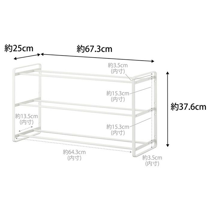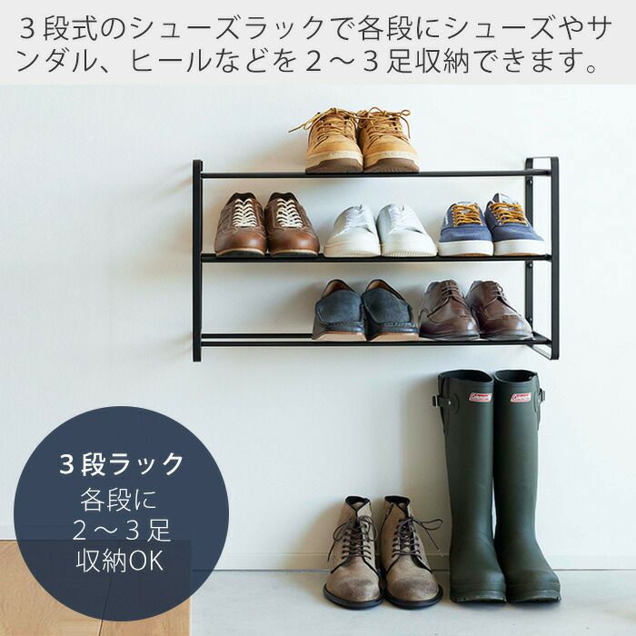 山崎実業 公式 石こうボード壁対応ウォールシューズラック タワー 3段