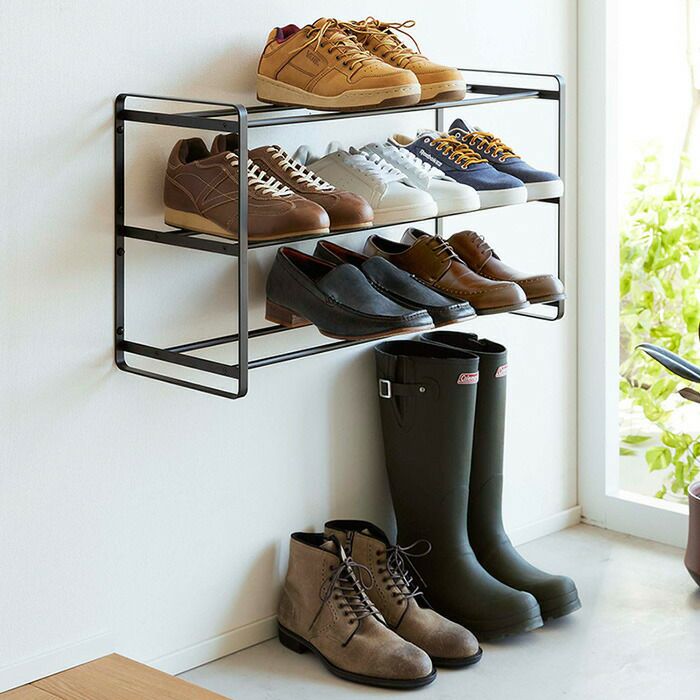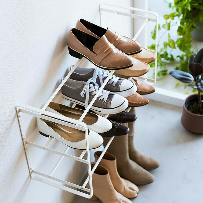 山崎実業 公式 石こうボード壁対応ウォールシューズラック タワー 2段