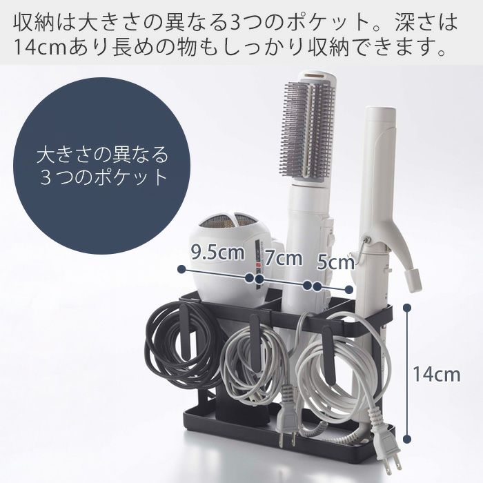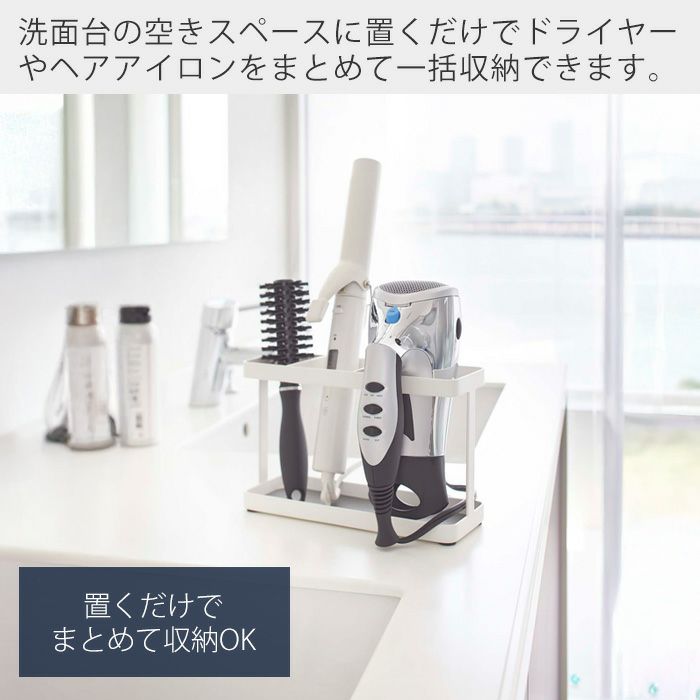 山崎実業 公式 収納付きドライヤー&ヘアーアイロンスタンド タワー