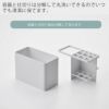 可動式のフックが2つ付属します。底面に取り付けてヘアゴムやブラシ、スポンジなどのバス・洗面小物をひっかけて置くことができます。