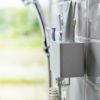 洗面台奥の壁やお風呂のタイル壁が収納に早変わり。歯ブラシスタンドを使いやすい位置に設置できるフィルムフックホルダーです。