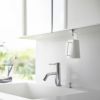 洗面戸棚下がタンブラーの収納スペースに早変わり。手に取りやすい位置に浮かせて収納できるタンブラーとホルダーのセットです。