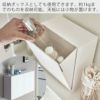 洗面所の壁面やキッチンボード・玄関などに取り付けて収納ボックスとしてもご使用いただけます。化粧水やお手入れ用品、郵便物・マスクなど、約1kgまでのものを収納できます。天板にも文房具やディフューザー、はんこや家の鍵などの小物が置けて便利。天板の耐荷重は約250gです。